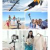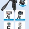 This light-weight, yet long-length and sturdy, tripod comes in a bag and with a remote control. Accessories included allows for attachment of cameras, video cameras, cell phones, cell phone lenses, compatible telescopes/binoculars and selfie-ring flash lights.
