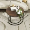 The Arcadia Nesting Tables present a versatile and stylish addition to any living space. This multi-functional set can serve as an end table, display surface, or purely decorative accent. Consisting of two tables, the smaller one conveniently fits beneath the larger one, offering flexibility in usage and saving space when needed.