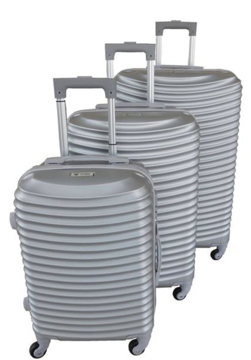 Asa 3 Piece Quality Hard Outer Shell Ringletted Lightweight Luggage Set - Silver