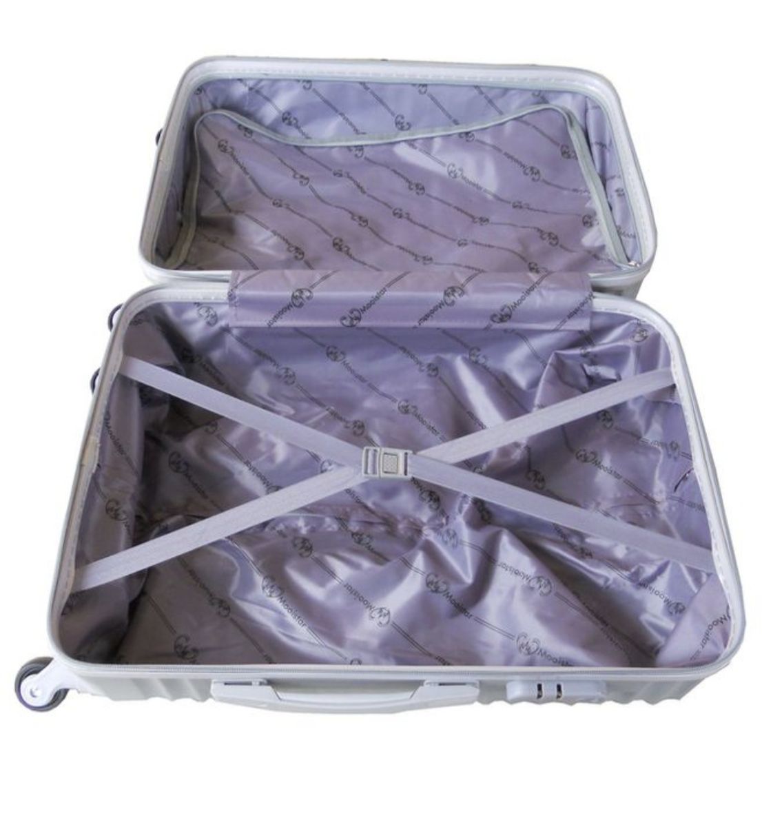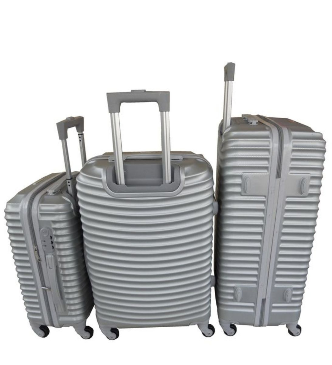 Asa 3 Piece Quality Hard Outer Shell Ringletted Lightweight Luggage Set – Silver