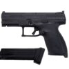 Its ergonomic grip supports the shooter’s grasp, offering a comfortable hold and satisfying feel that fits perfectly into your hands. Also, it boasts under-frame safety controls as well as trigger safety. Its smaller size makes it a wonderful compact weapon to carry discreetly into the CQB arena and lighter and faster to draw. It also comes equipped with traditional metal sights. It features a sleek metal slide, and its lower frame is reinforced polymer, making it both lightweight and durable.