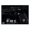 The P-10 C magazine can hold 22 6mm BB rounds. You can also adjust the hop-up easily through the slide without taking the pistol apart. The package includes the pistol, three changeable backstraps (small, medium, large) and a user manual.
