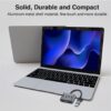 The hub's lightweight and portable design makes it ideal for users on the go. Its compact size ensures easy storage in a laptop bag or backpack, making it a convenient travel companion for business trips, remote work setups, or simply moving between workspaces. This portability ensures that you always have access to additional USB ports wherever you need them, ensuring connectivity without compromise.
