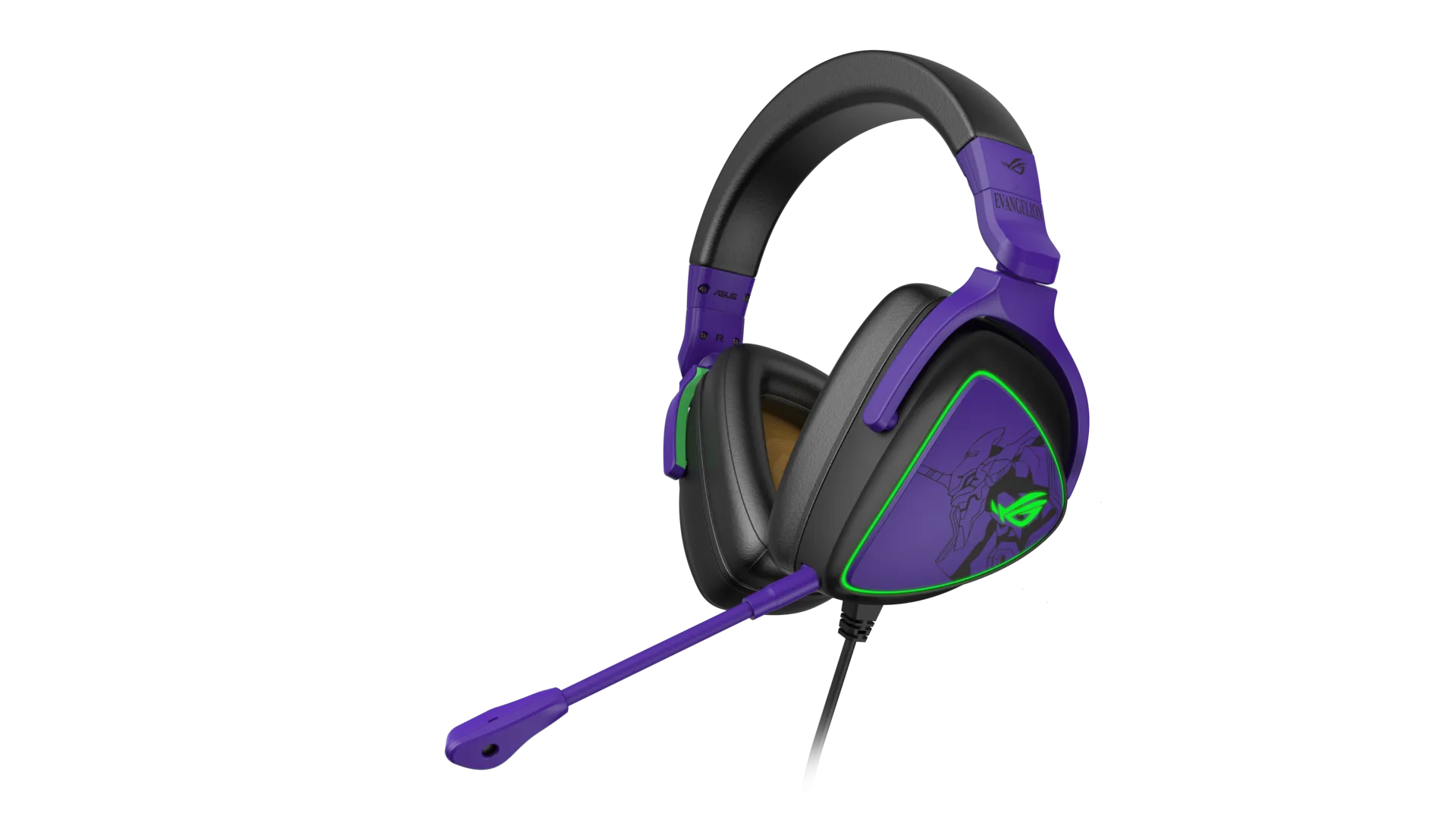 The ROG Delta S EVA Edition headset encapsulates a hi-fi-grade ESS 9281 QUAD DAC⢠and ASUS AI Noise-Canceling Microphone within a lightweight shell that features EVA-inspired purple-and-green aesthetics and customizable RGB lighting.