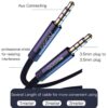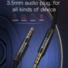 3.5mm male-to-male stereo audio cable transmits audio in stereo format