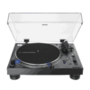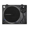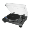 The AT-LP140XP fully manual professional DJ turntable features a high-torque direct-drive motor and anti-resonant, mass-damped, die-cast aluminum platter to ensure stable, on-axis rotation at 33-1/3, 45, and 78 RPM. It is equipped with an S-shaped tonearm with height adjustment, adjustable tracking force (counterweight) and adjustable dynamic anti-skate control.