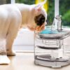 The fountain’s design encourages pets to drink more water by offering a flowing stream, mimicking a natural water source. The flowing water also inhibits bacterial growth, maintaining water freshness for longer periods.