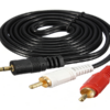 The RP002 is a 1.5m long Audio Cable Assembly with one black 3.5mm stereo phone plug and two RCA/phono plugs (red and white) with black cable jacket.
