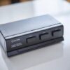 This compact switcher box allows connection of up to three stereo sound sources, to one amplifier.