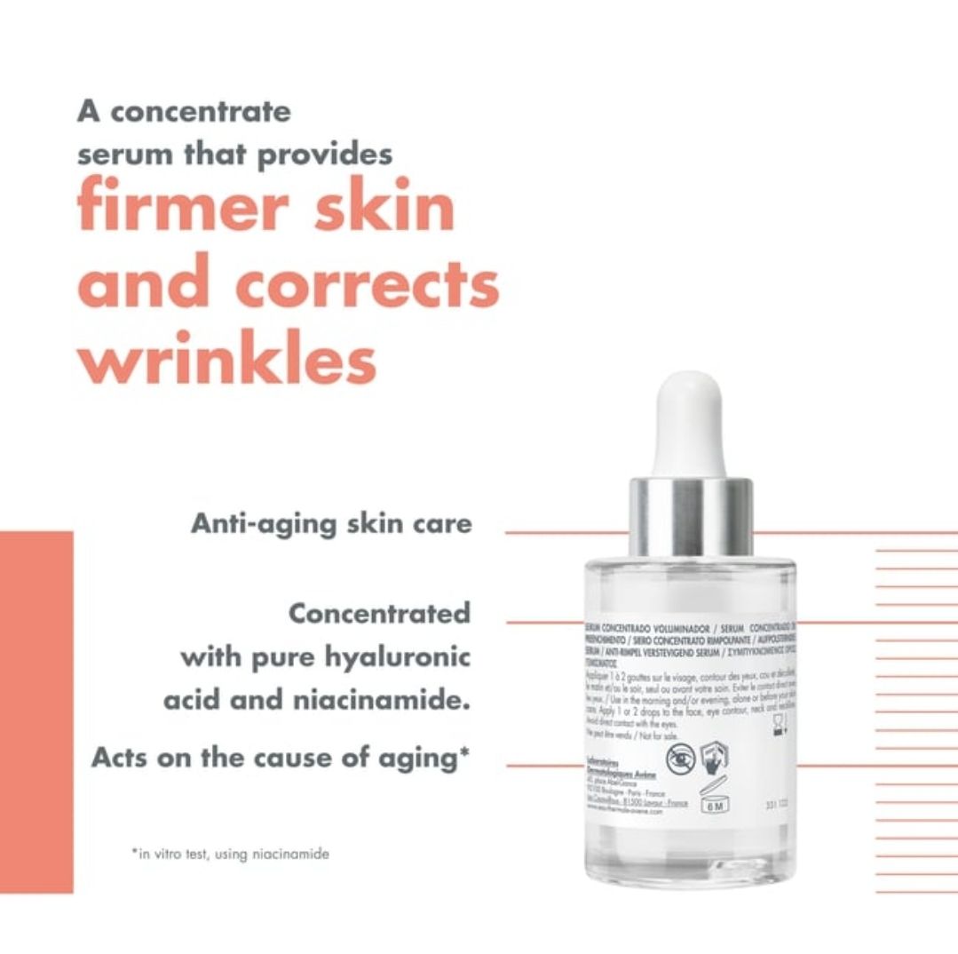 Avene Hyaluron Serum is a concentrated serum with pure hyaluronic acid (1.5%) and niacinamide (6%) which acts on the cause and signs of ageing. Skin feels firmer, and wrinkles appear reduced after use.