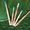 Our bamboo toothbrushes are made from sustainably grown MOSO bamboo that is naturally anti-microbial meaning germs won’t find it an inviting place to make their home! The handle, as well as the packaging, is biodegradable and the PLA insert is compostable.