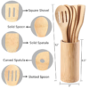 Premium natural bamboo wood is the best material for kitchen utensils – it will not rust or melt and contains no BPA or toxic chemicals, making it better than plastic, metal, silicone, and even traditional wooden cooking tools. It is also safe for cooking with all types of cookware, including nonstick cookware, and will not scratch the non-stick surface.