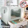 Convenient drawer design – This drawer design of the cat litter box solves the drawbacks of the previous ordinary cat litter box which is difficult to clean. It can easily clean and replace the litter by simply sliding out the bottom drawer, giving you a more relaxing experience.
