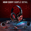 – Lightweight and ergonomic design with padded headband and breathable ear cushions for extended gaming comfort.