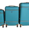 ABS luggage set, green luggage, 3-piece luggage, spinner wheels, hardshell suitcase, combination lock suitcase, travel luggage set, durable luggage, stylish suitcase, lightweight luggage, 360-degree wheels, retractable handle luggage, brown accents luggage, Begin Again luggage, carry-on suitcase, medium suitcase, large suitcase, ribbed luggage, smooth finish luggage, organized interior suitcase, cross straps suitcase, glossy luggage set, telescoping handle suitcase, trendy luggage, modern travel luggage.