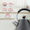 Powerful 2200W concealed heat element with boil dry protection, auto shut-off & overheat protection