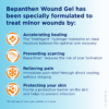 Bepanthen Wound Gel is specially developed to treat minor wounds like cuts, chafed or cracked skin, and burns (including sunburn). The hydrogel provides soothing pain relief with its non-stinging, cooling effect. It also helps accelerate the healing process by covering a wound to create a moist environment.