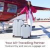 Its sleek design of the water-resistant hardshell casing and retractable telescopic handle ensures simplicity for traveling while charging your devices on the go with its USB charging ports. Our city functionality anti-slip 360 spinner wheels, and built-in TSA lock give you the freedom to travel anywhere with our innovation of security, lightness, and capacity that reduces ocean-bound plastic for you to travel guilt-free.