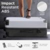 – This hard-shell spinner suitcase offers a large and compact packing area.