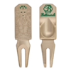 This spring classic divot tool features a detailed junior wizard caddie over ladder milling on the front and a hex b and wordmark on the back over the thumb contour. Milled and painted in-house at our tinley park, il headquarters, this 303ss two-prong divot tool has a gold flame finish to complement the ivy green paint fills.