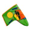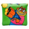 In our latest collaboration with Hasbro, it’s NERF or Nothin’! This blade putter headcover features our Fat Cat firing off ballistics balls from his ball blaster while darts fly past him. If it’s a fight they want, it’s a fight he’ll give them! This headcover is stitched on a green carbon fiber base with an orange plush interior to NERF your putter and keep it protected.