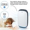 – Removes up to 99.95% of allergens such as domestic dust, animal hair, odours, pollen, some airborne viruses, and bacteria as well as harmful gases.