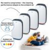 – Automatically monitors ambient air and adjusts fan speed / cleaning performance