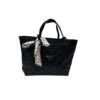 The bag comes with two straps for carrying over the shoulder and a shorter strap for hand-carrying or wrist wear, offering versatile carrying options. An elegant scarf is attached to the exterior, adding a touch of sophistication and style.