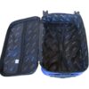 – Black Trim and Accents: Black handles, wheels, and zippers contrast beautifully with the blue fabric, adding a touch of elegance.