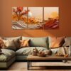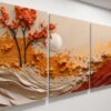 Boho Beige Orange 3 Piece Abstract Canvas Wall Art Deco