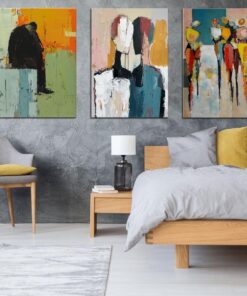 Boho Beige Orange 3 Piece Abstract Canvas Wall Art Deco
