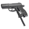 – The air pistol is powered by a single 12g CO2 cartridge, which should give you about 60 shots. The CO2 cartridge must be placed inside the grip.