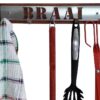 This handy braai utensils holder with 5 rounded hooks can be used to hold your braai tongs and other utensils