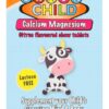 BrainChild Calcium and Magnesium Tablets is a fruity citrus flavoured calcium and magnesium supplement for children. Calcium helps build and maintain bones and teeth in children. Calcium contributes to the formation of tissue in children. Calcium supports normal muscle function. Magnesium helps absorb calcium. Brainchild Calcium-Magnesium is lactose-free. It’s a useful supplement if you have restricted dietary intake of dairy products and other calcium sources.