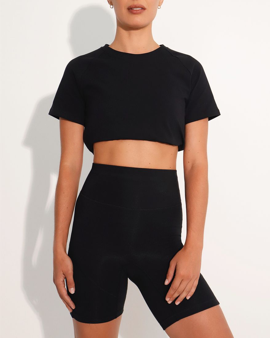 Breeth Breathable Comfortable Cotton High Waist Travel Shorts - Black - UK 16