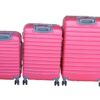 luggage set, 3-piece luggage, ABS luggage, hard shell suitcase, spinner wheels, pink luggage, telescoping handle, durable travel luggage, combination lock, ribbed design luggage, pink suitcase set, travel bags, rolling suitcase, lightweight luggage, secure luggage, bright pink suitcase, double wheels luggage, patterned interior luggage, scratch-resistant luggage, zippered closure, hot pink luggage set, stylish luggage, spinner suitcase, large luggage set, carry-on luggage.