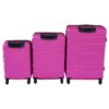 Travel in style with this vibrant hot pink ABS 3-piece luggage set, designed for durability and convenience. Each piece features a rigid, hard-sided exterior made from Acrylonitrile Butadiene Styrene (ABS) material, known for its lightweight yet sturdy properties. The textured, ribbed surface enhances durability and helps minimize visible scratches, ensuring your luggage looks great trip after trip.