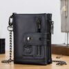 Bullcaptain Gunner Genuine Leather Bifold RFID Blocking Men’s Zip Wallet – Black