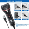 Rechargeable — Equipped with Battery Display and Light The high-quality electric foot file features a large capacity 1200mAh lithium battery that can operate for approximately 60-90 minutes with just a 2-3 hour charge time. It also includes digital battery display and light that shows the remaining battery life and when to charge. Foot care for women, this dead skin remover's light turns on automatically when the foot file is working, providing illumination on the targeted area of dead skin.