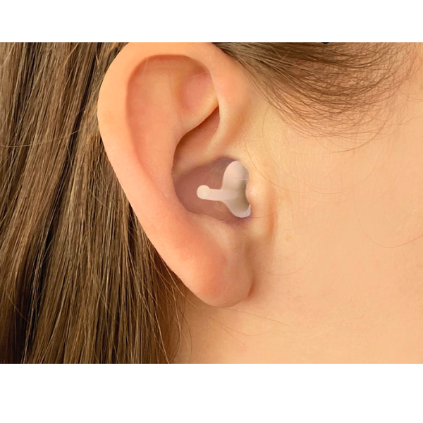 Calmer reduces resonance (distortion) by using a tiny waveguide inside our ears that removes the effect of the Concha. The Concha is the small shell shape that connects to our ear canal which normally resonates with mid-frequency sounds.