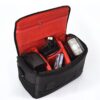 “This Camera bag has 3 compartments that can be adjusted with Velcro inserts provided . The bag is fully padded for protection of camera and equipment. It has a shoulder strap as well as a carry handle.