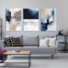 Canvas-Art-3 Pieces Blue & Creamy Colour Living Abstract Wall Art
