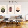 Canvas-Art-3 Pieces Green, Red & Orange Bohomian Geometric Circles Wall Art