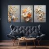 Canvas-Art-3 Pieces Orange & White Blooming Elegance Floral Wall Art