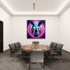 The unique blend of natural wildlife imagery with an almost digital, neon glow makes it an interesting conversation starter and a bold statement piece for any space. Whether displayed in a living room, office, or even a chic bedroom, this cosmic rhino invites viewers to contemplate the majesty of nature and the mysteries of the universe.