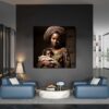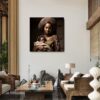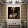 This captivating canvas print, meticulously stretched onto a sturdy wooden frame, invites viewers into a world of quiet contemplation. The central figure, swathed in an intricate, vibrantly patterned garment, exudes elegance and poise while loving and celebrating her child. The warm earth tones evoke a sense of grounded serenity. “Silent Reverie” celebrates cultural beauty, resilience, and the power of silence. Perfect for adorning any space, it encourages reflection and appreciation.