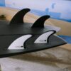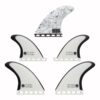 The Panda Five Fin Set (can be ridden as quads or thrusters) is a medium sized fin set inspired by the classic EA template. It’s constructed in solid glass for a powerful connected feel thatâs a little stiffer than honeycomb, but is foiled out to give more flex in the tip. The upright template will suit a wide variety of wave types from pumping barrels to everyday beach break conditions and all-around fun. The set is designed to work in your favorite performance shortboard as a thruster giving it a solid balanced feel in any conditions while the 80/20 foil of the quad is for your small wave fun boards where a fast controlled quad set might be neede
