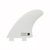 The Tyler Warren 5-fin is a large template with a classic outline that allows for thruster and quad options. Ride them as thruster for powerful turns in the pocket or go with the quad option to loosen it up a bit.”This is a well-rounded set of thrusters that allow plenty of drive with slightly larger side fins and a smaller trailer fin for release. The quad set allows for plenty of drive and control while still allowing for a loose feeling”