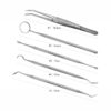 2. Easy to Use: 5 different tools for different functions and make the process as easy and effortless as possible. Mirror handle with mirror is use to see the teeth inside the mouth. * Tarter scraper is use to remove hard tarter & plaque from the surface of teeth’s. * Sickle scaler can be use to clean among the area which is hard to reach. * Dental Probe is especially use to remove the particles from front of the teeth’s. * College tweezer is most commonly used in dentistry to carry and place cotton rolls between cheek and gum.
