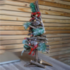 Christmas Tree with Red Berries, Wood, and Pine Cones